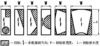 對于特殊的異形鋼格板。如圖所示,面積為寬(W)×長(L),不扣除切除部分。當然這樣的鋼格板,價格會稍微便宜一些。